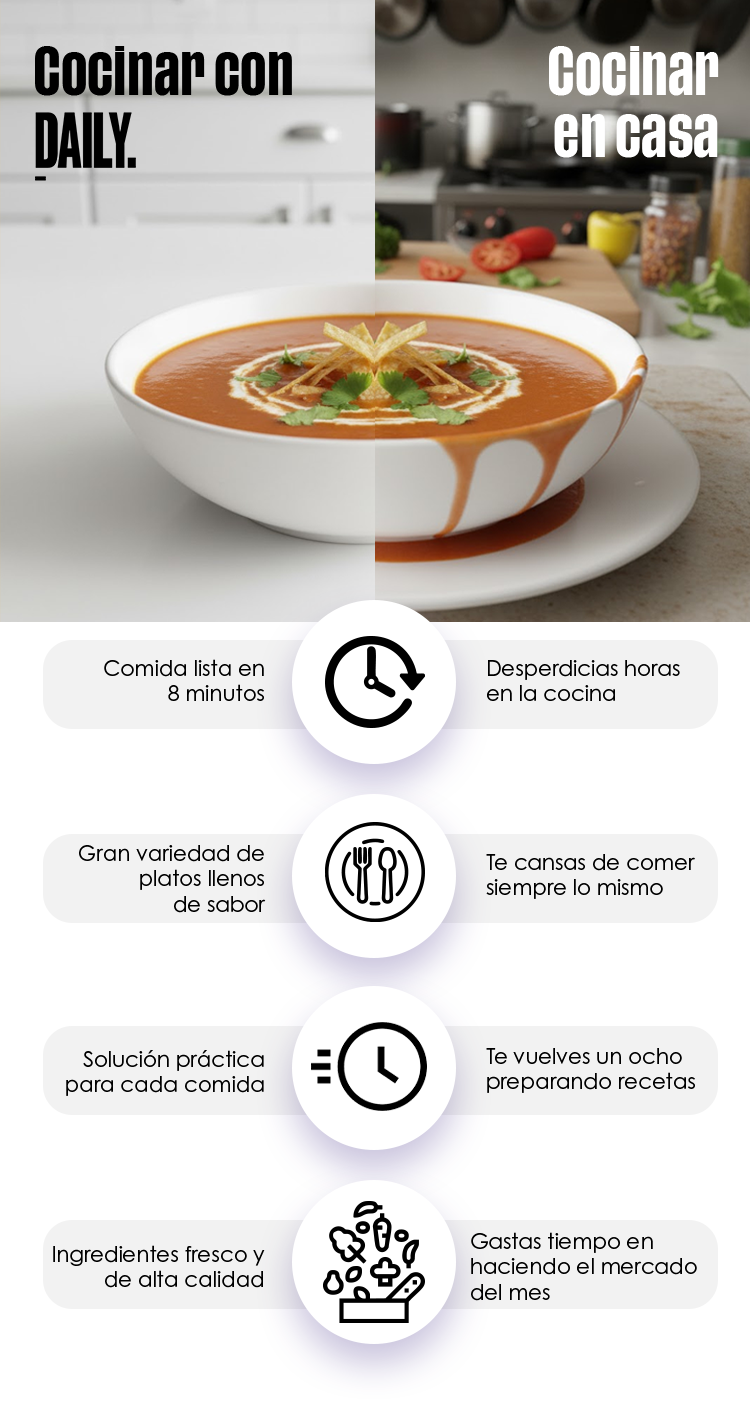 En 24 horas ya tendrás tus platos Daily listos para disfrutar.