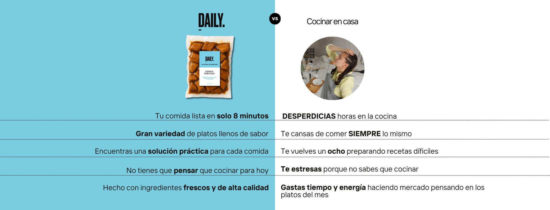 En 24 horas ya tendrás tus platos Daily listos para disfrutar.